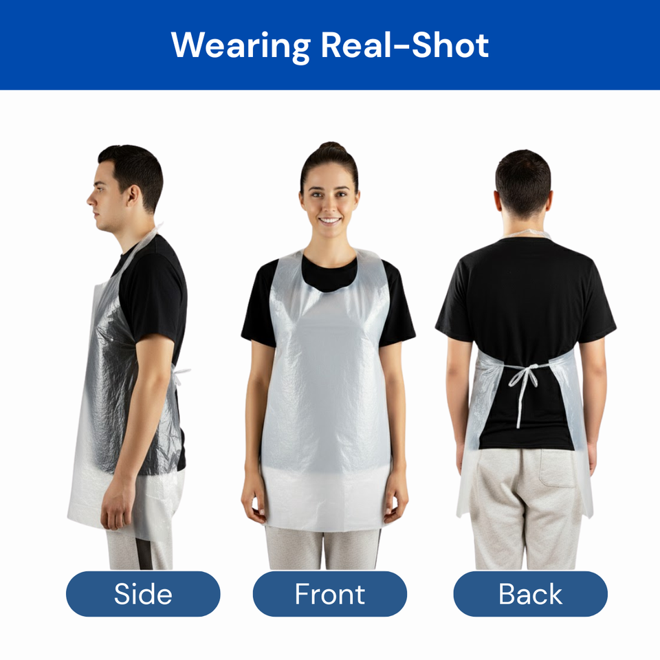 Delantal desechable de polietileno (PE) de alta calidad para uso de Conserjería Delantal impermeable sin mangas Suministro comercial B2B