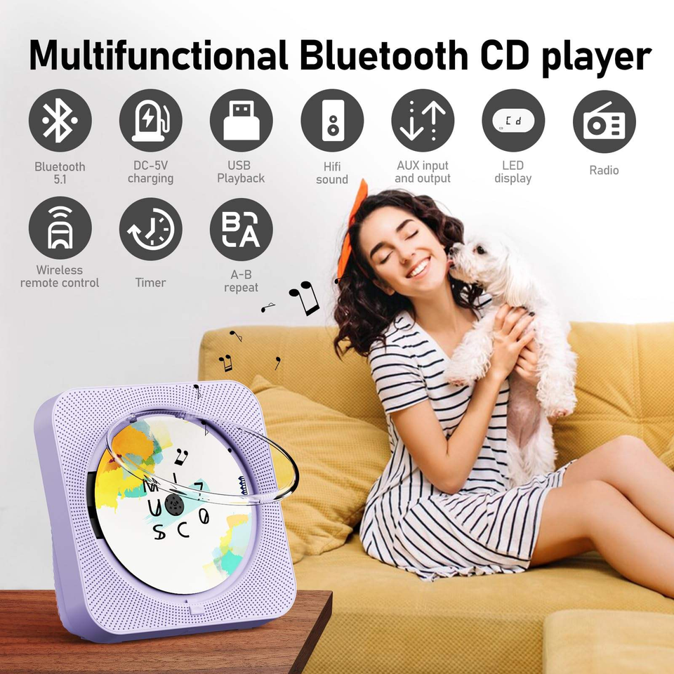 Reproductor de CD Portátil de Alta Calidad, Conexión Inalámbrica BT, Control Remoto, Altavoz Integrado, Uso Doméstico
