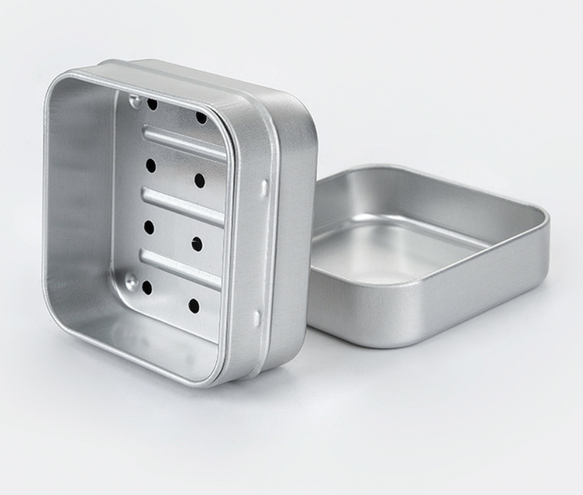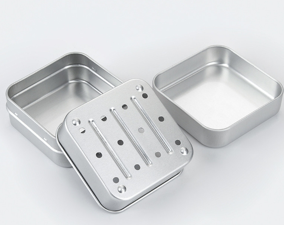 Contenedor de estaño de aluminio cuadrado de 3 capas doble portátil de alta calidad Diseño de drenaje 3D para viajes en interiores Uso en hoteles Latas de metal