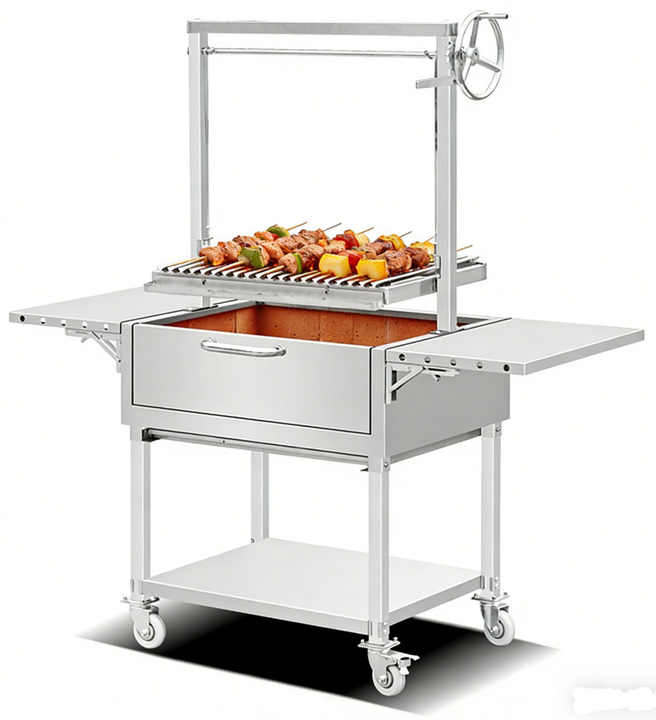 Parrilla Argentina Portátil de Acero Inoxidable de Alta Calidad y Duradera con Dispositivo de Seguridad contra Llamas, Estilo Santa María