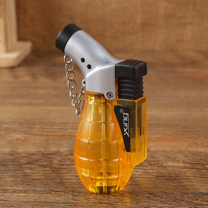 Encendedor de cigarrillos portátil de alta calidad, forma de Granada, rellenable, vacío, a prueba de viento, llama de chorro, encendedor de cigarrillos