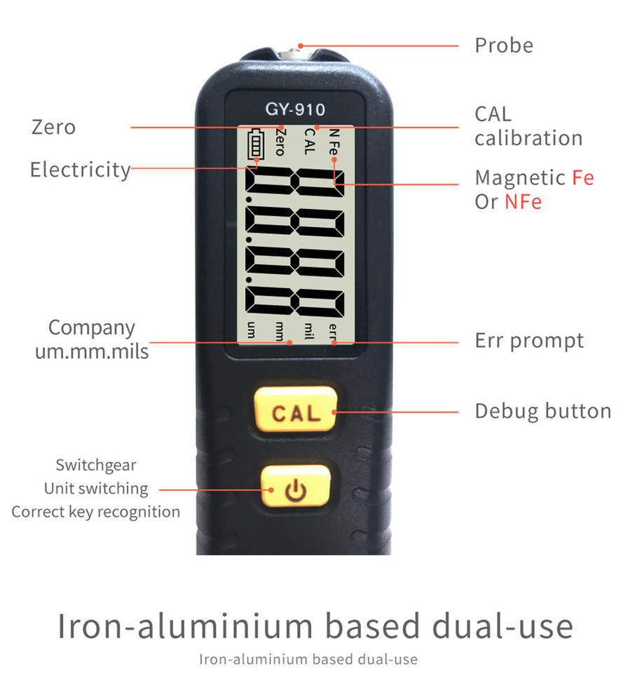 Nombre del producto:Medidor de espesor de recubrimiento preciso Medición medidor de espesor de pintura