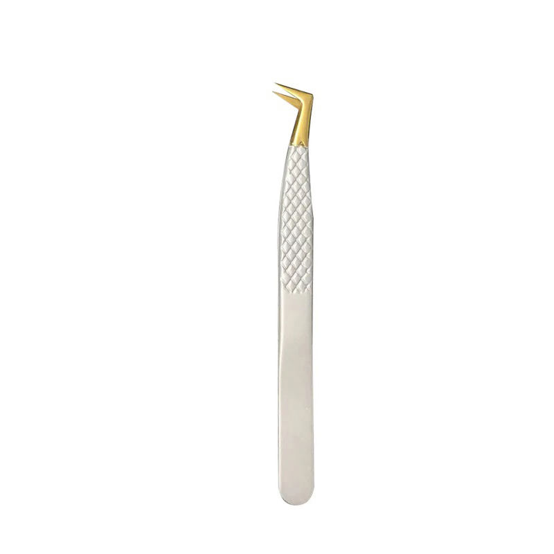 Pinzas de pestañas curvas de acero inoxidable de precisión de alta calidad, herramientas para extensiones de pestañas de volumen, modelo aplicador, tipo de punta de fibra