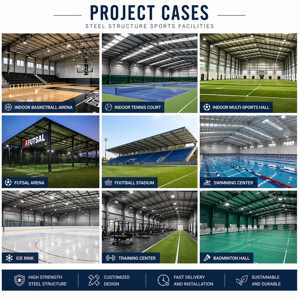 Cancha de Fútbol Prefabricada de Acero de Alta Calidad | Estadio de Fútbol Interior y Exterior | Pabellón Deportivo de Acero Personalizable