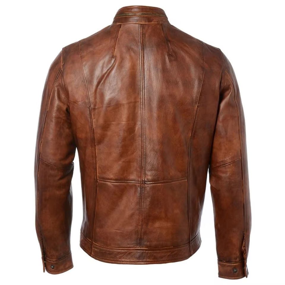 Chaqueta de cuero de piel de vaca marrón Premium de alta calidad Vintage Slim Fit con capucha Stand Collar motocicleta prendas de vestir exteriores al por mayor hombres