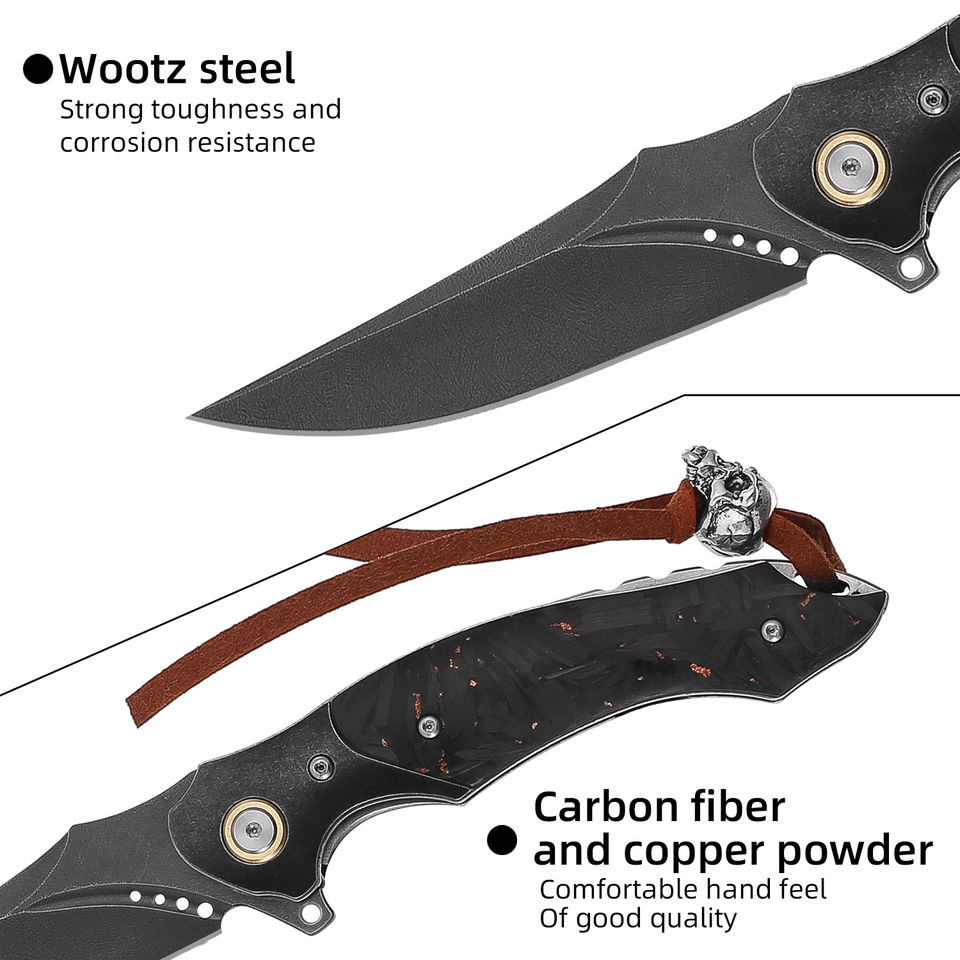 Cuchillo Plegable Táctico de Acero de Damasco de Alta Calidad, Mango de Fibra de Carbono y Cobre, para Camping y Caza, OEM/ODM PRESTIGE BLADES