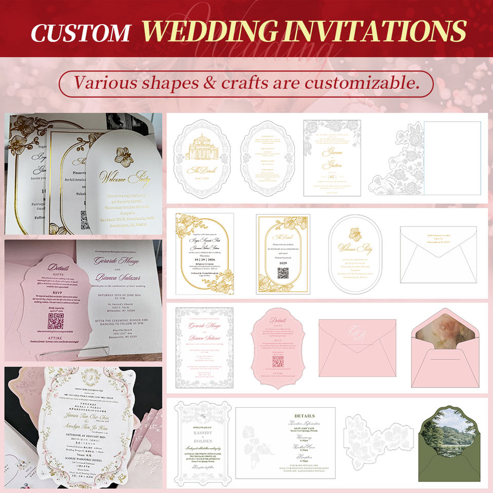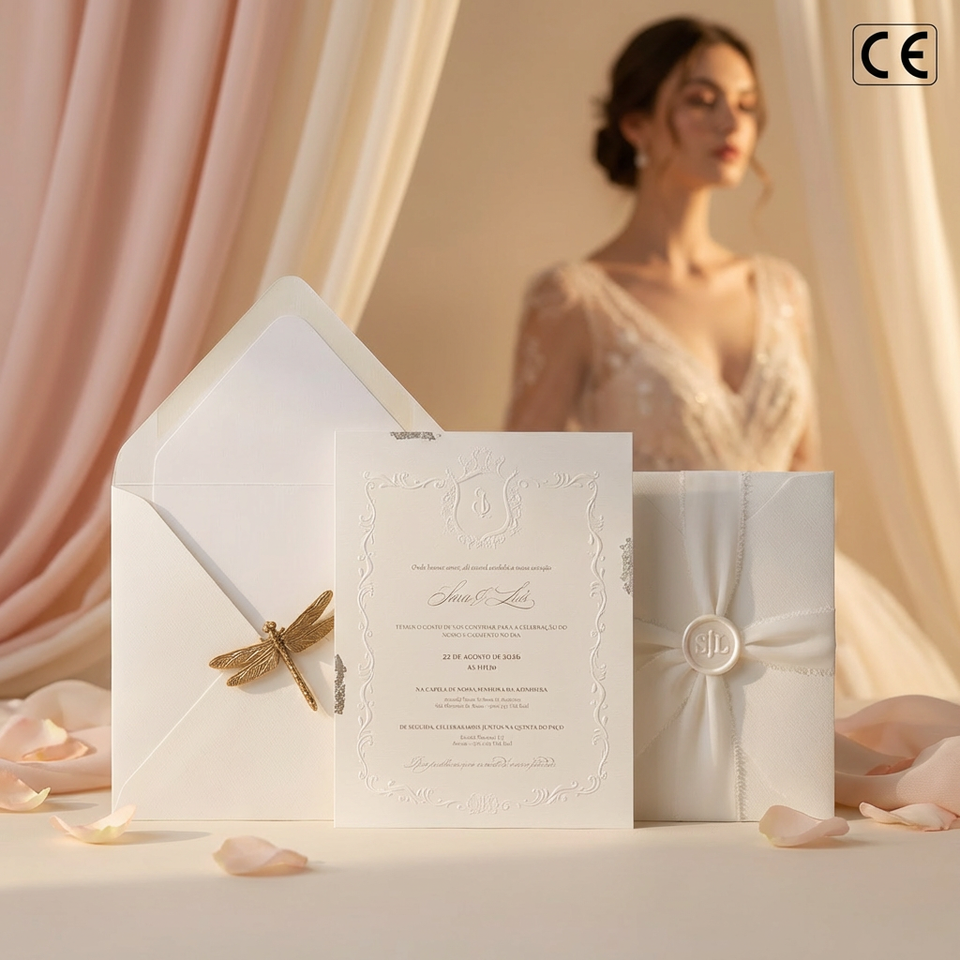 Tarjeta de Invitación de Boda con Grabado Floral de Alta Calidad y Prestigio, Papel de Color Marfil Personalizado con Diseño de Sello de Cera, Venta al por Mayor