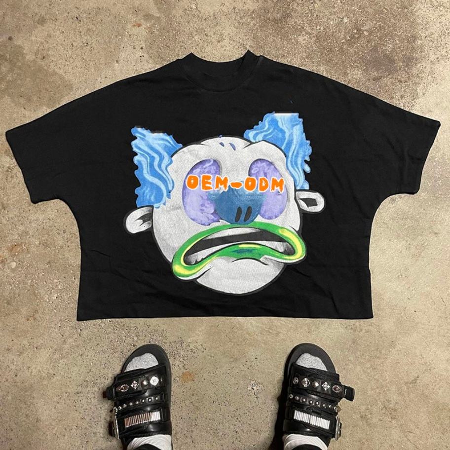 Camisetas de Alta Calidad con Logotipo Estampado, Corte Cuadrado, Hombros Caídos, Unisex, Lavado Ácido, Estampado Vintage, Camisetas Cortas de Algodón para Hombre, Personalizadas