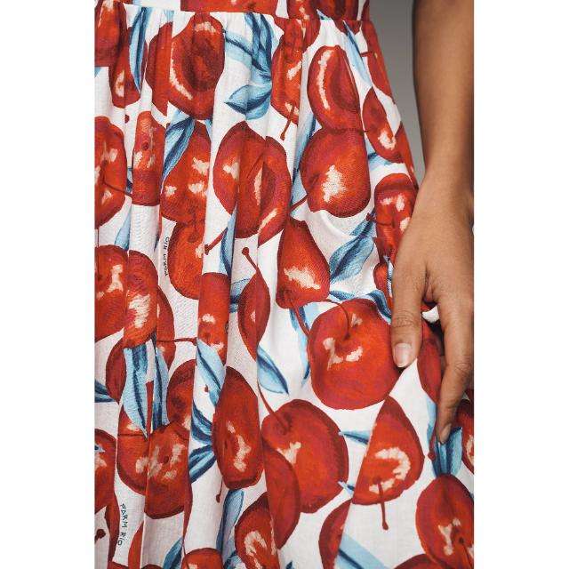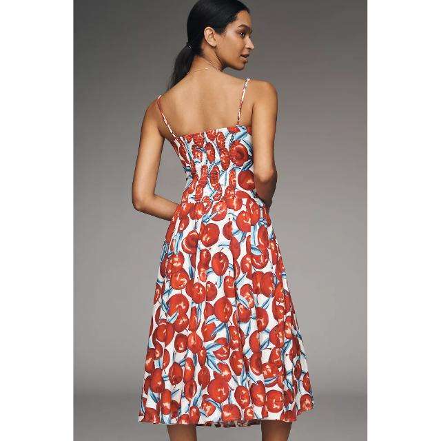 Vestido Midi de Alta Calidad con Tirantes Estampados, Hecho a Mano, Ecológico, 100% Algodón, Transpirable, con Estampado Floral, sin Mangas, Cuello en V y Corte en A