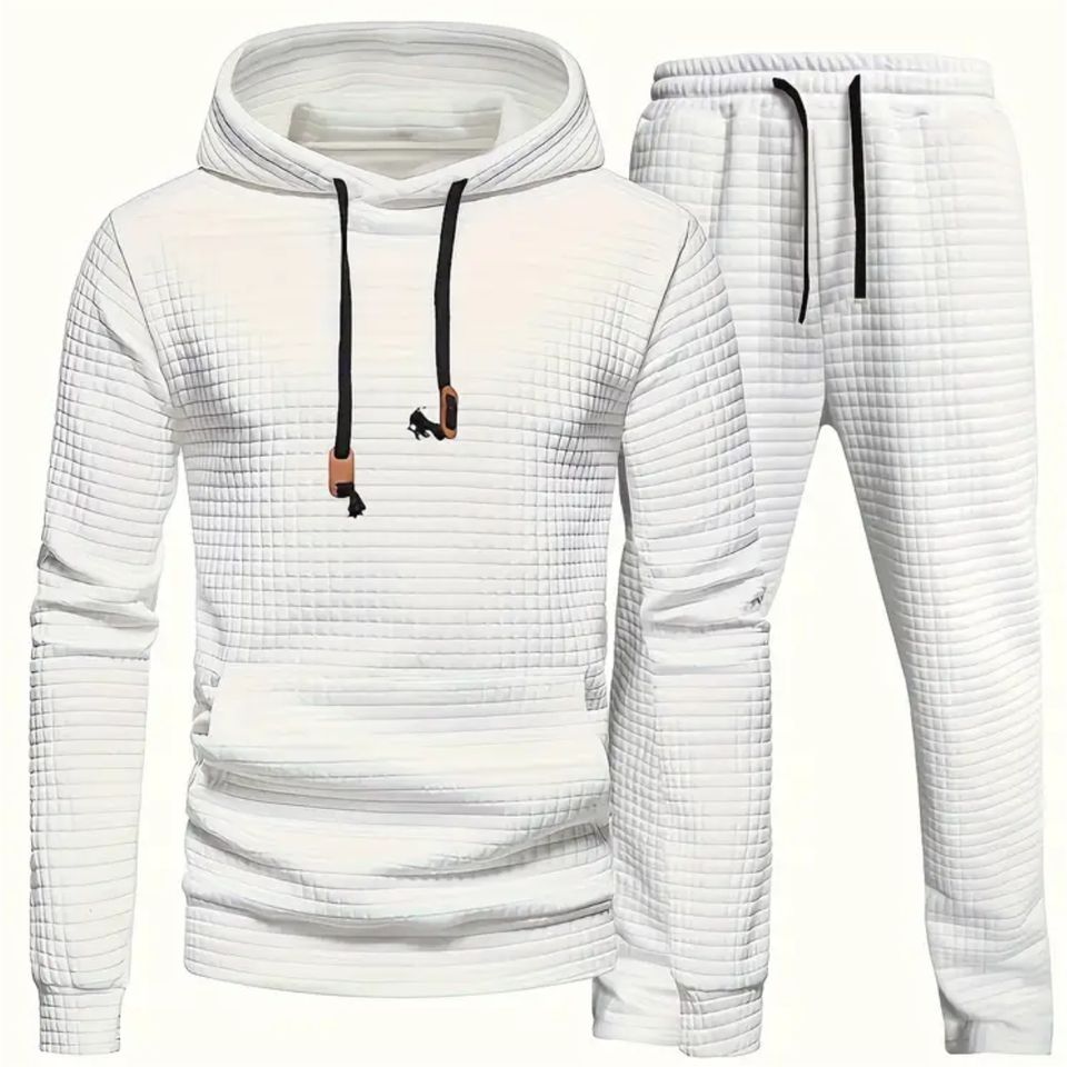 Conjunto de chándal para hombre sólido estampado de alta calidad-Chaqueta y pantalones de poliéster/algodón transpirable para ropa atlética e informal