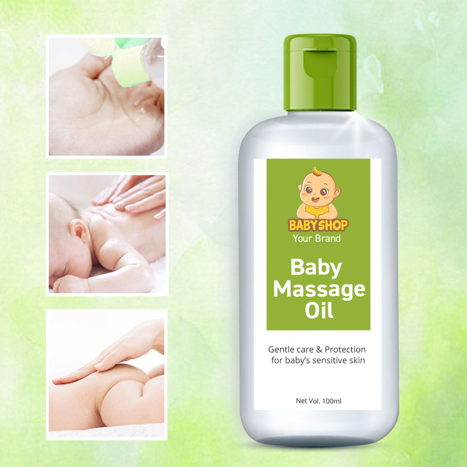 Aceite calmante para bebés de etiqueta privada de alta calidad, cereza de invierno multiusos infundida con aceites esenciales de aguacate para masaje de bebés
