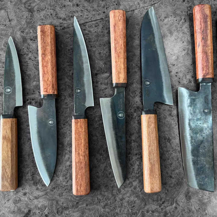 Tipos de cuchillo:Nakiri, Tall Petty, Petty 110, Petty 150, Santoku, Honesuke, Turquía