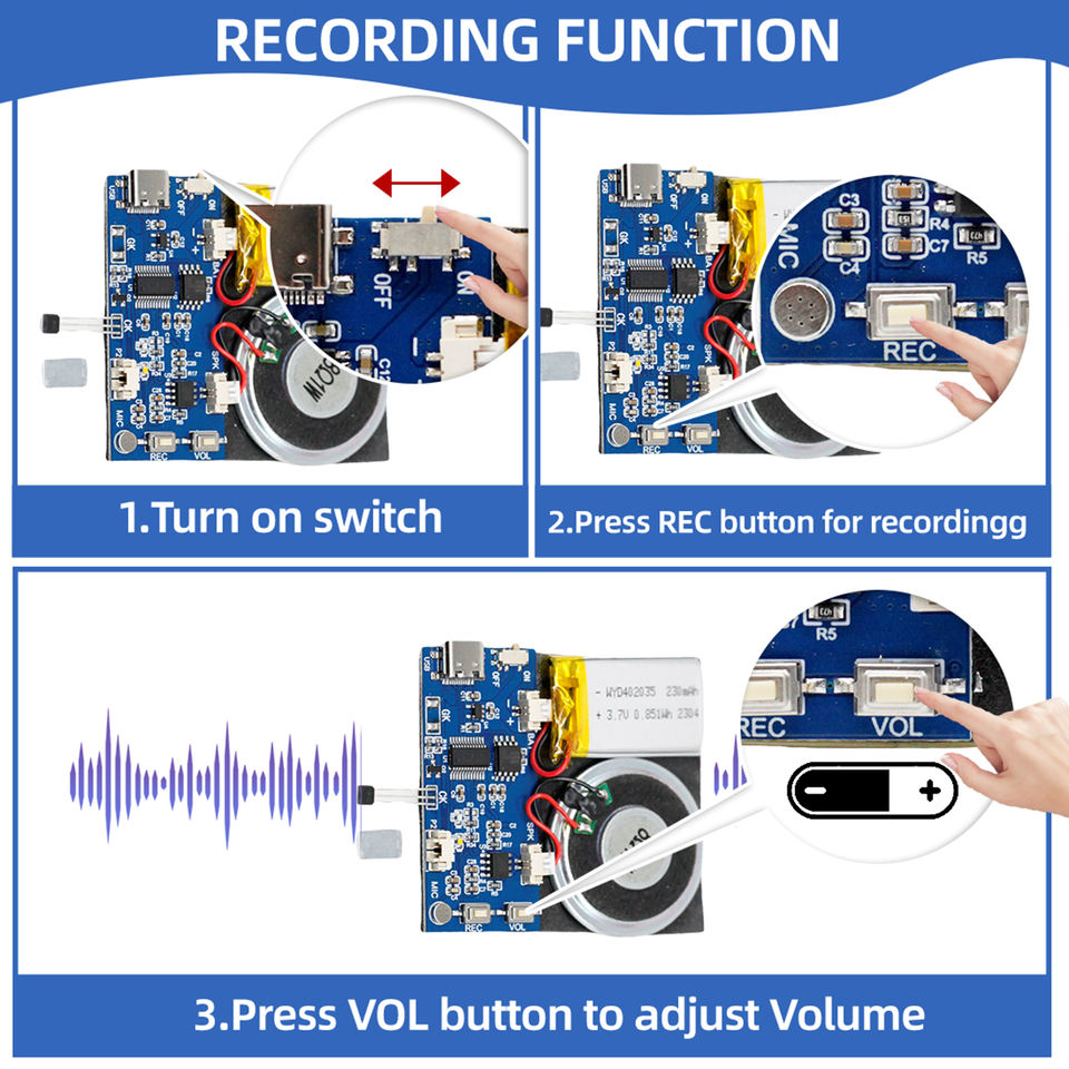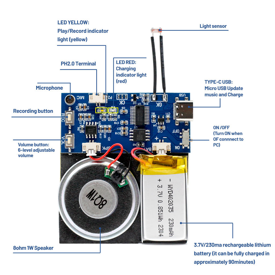 Módulos de Sonido Programables de Alta Calidad, Módulo de Voz Descargable por USB con Control de Luz y Función de Grabación para Caja de Regalo