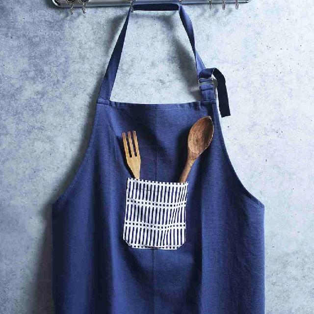 Delantal de lona promocional de alta calidad con logotipo personalizado, delantal de algodón orgánico de lino reutilizable ajustable con dos bolsillos, certificado GOTS