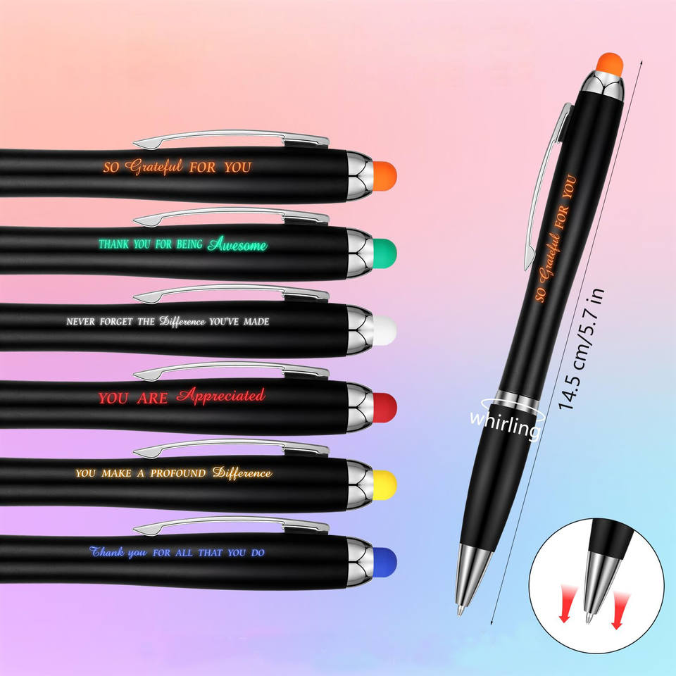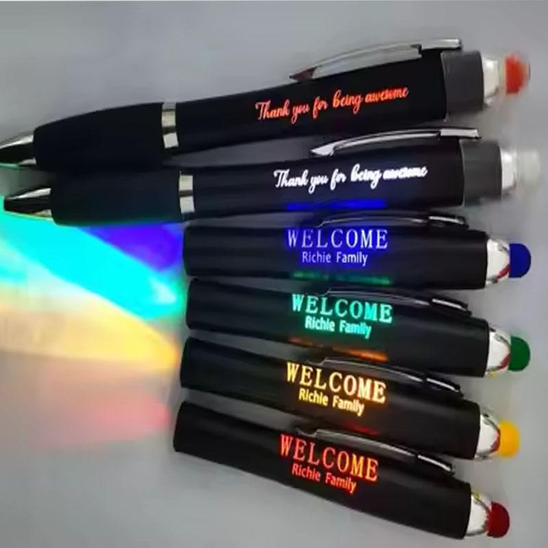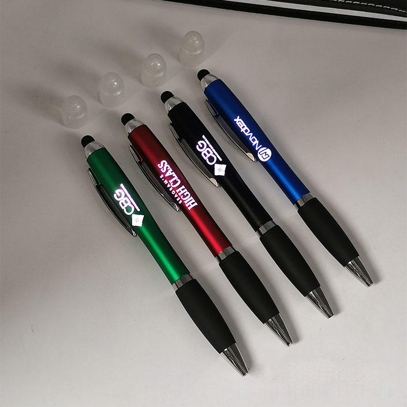 Regalo promocional de alta calidad, luz LED, pantalla táctil, logotipo láser personalizado, bolígrafos Stylus