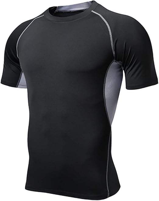 Alta calidad secado rápido estiramiento entrenamiento Fitness manga corta Rash Guard Top ropa de gimnasio activa para hombres