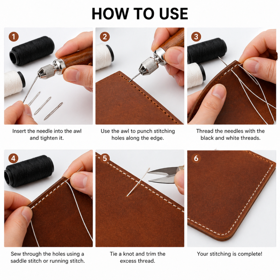 Kit de Costura Rápida de Cuero con Hilo Negro y Blanco, Juego de Herramientas para Coser a Mano | Agujas, artesanía en cuero | Prospecciones de Exportación de la India 2026
