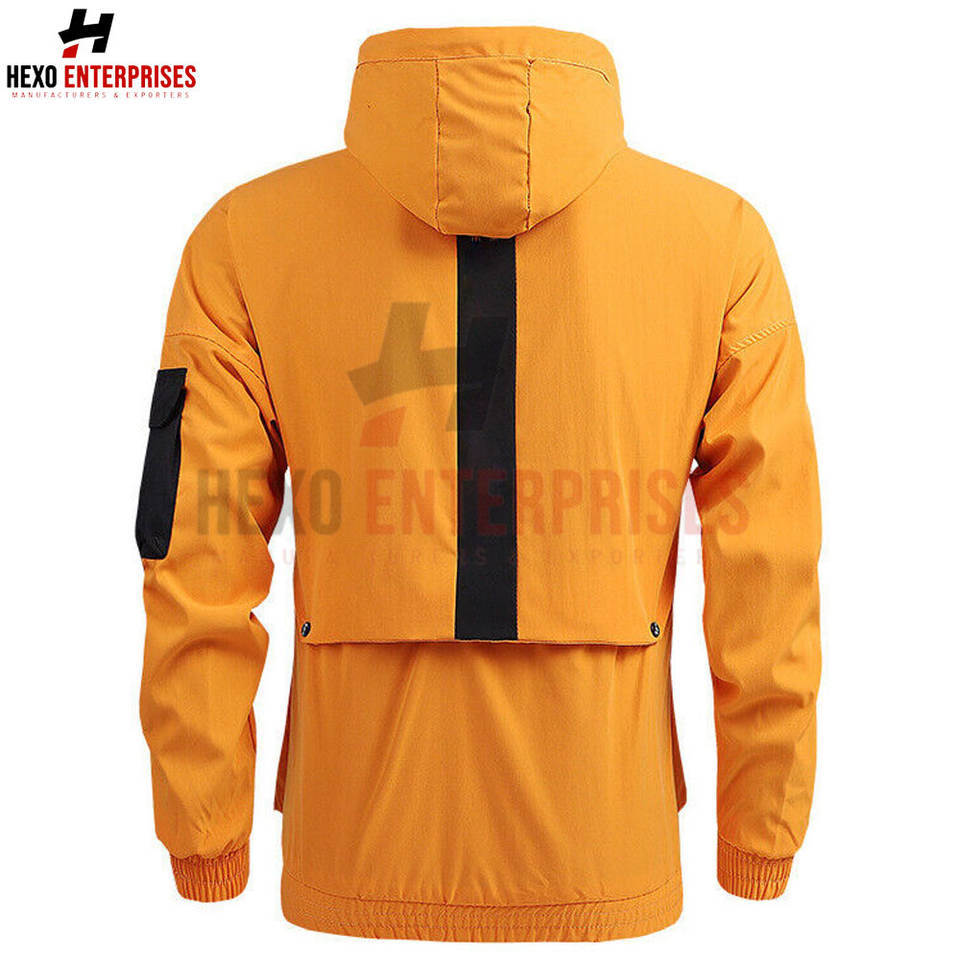 Chaqueta de lluvia personalizada de alta calidad para hombre, cortavientos con cuello con capucha, venta al por mayor, chaqueta de tela impermeable, estilo novedoso