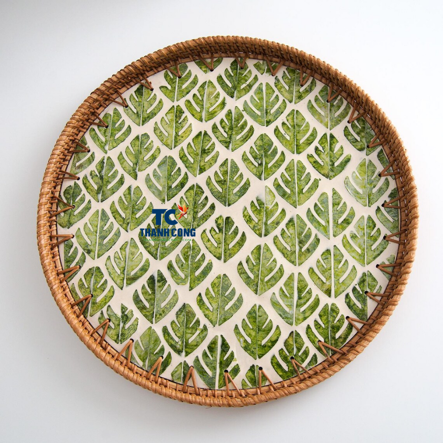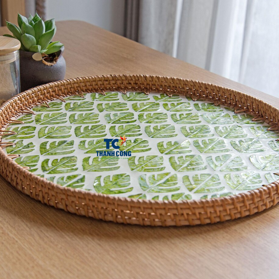 BANDEJAS DE MADRE DE PERLA con borde de ratán de alta calidad para servir con estilo, mesa de té y presentación de regalo de lujo