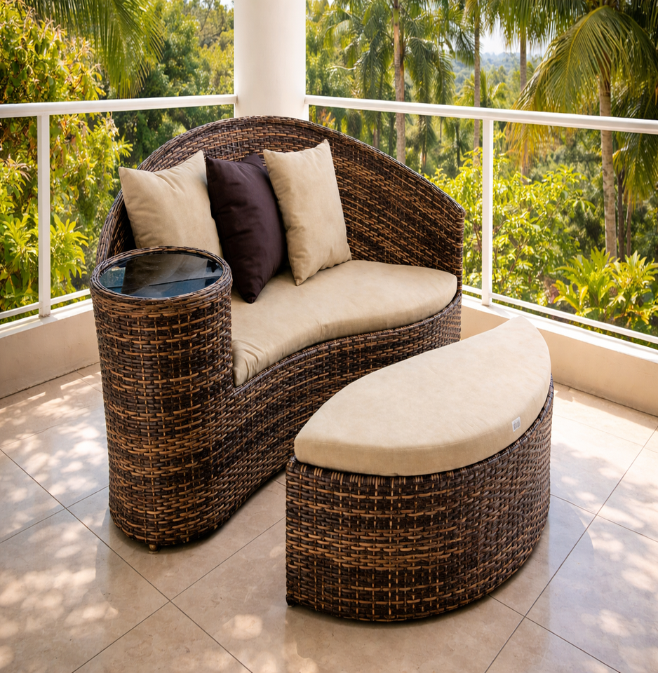 Conjunto de Tumbonas de Ratán de Alta Calidad para Patio con Cojines, Muebles de Exterior Resistentes a la Intemperie para Espacios Modernos