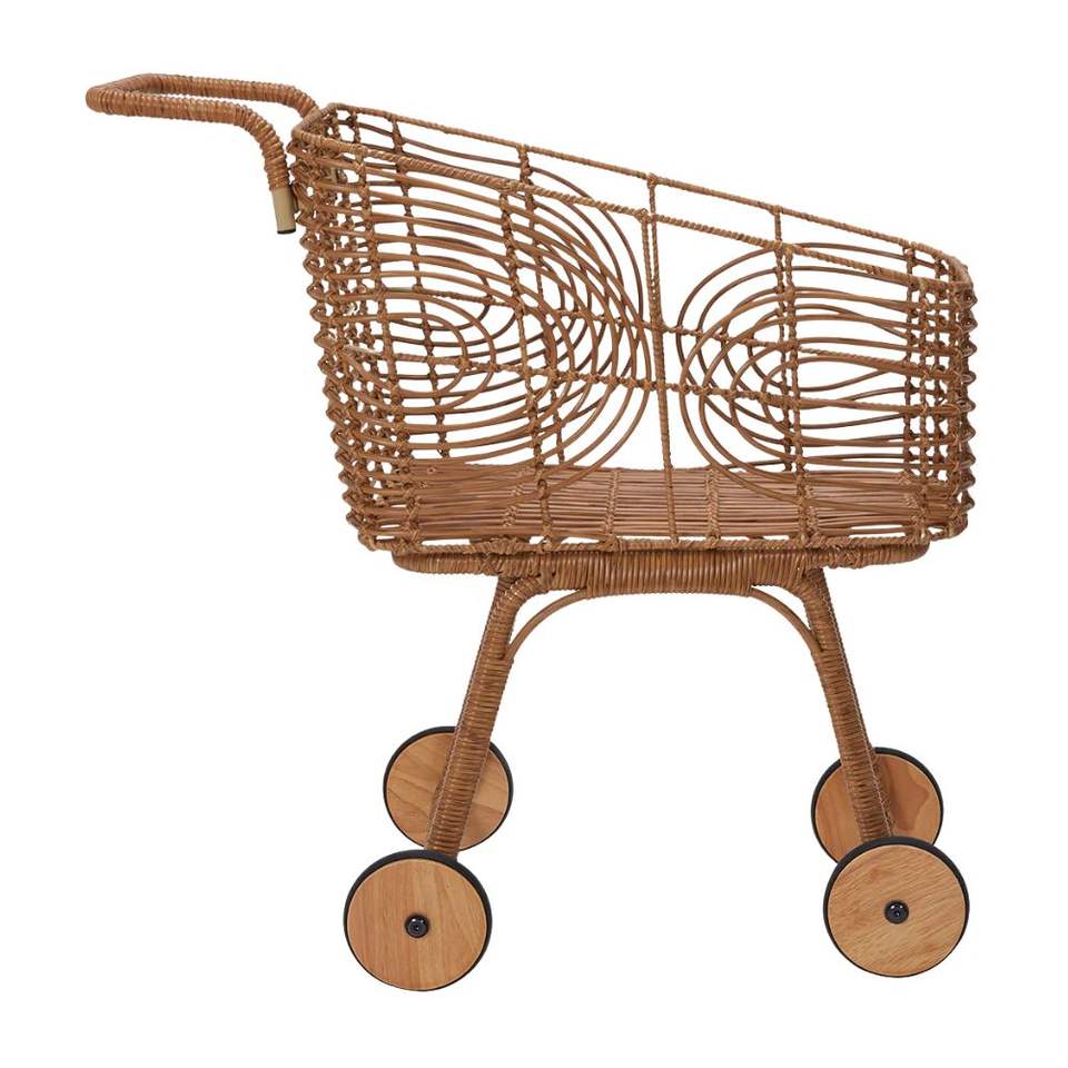 Rattan Play Shopping Trolley Rattan Grocery Shopping Cart Kid Toys