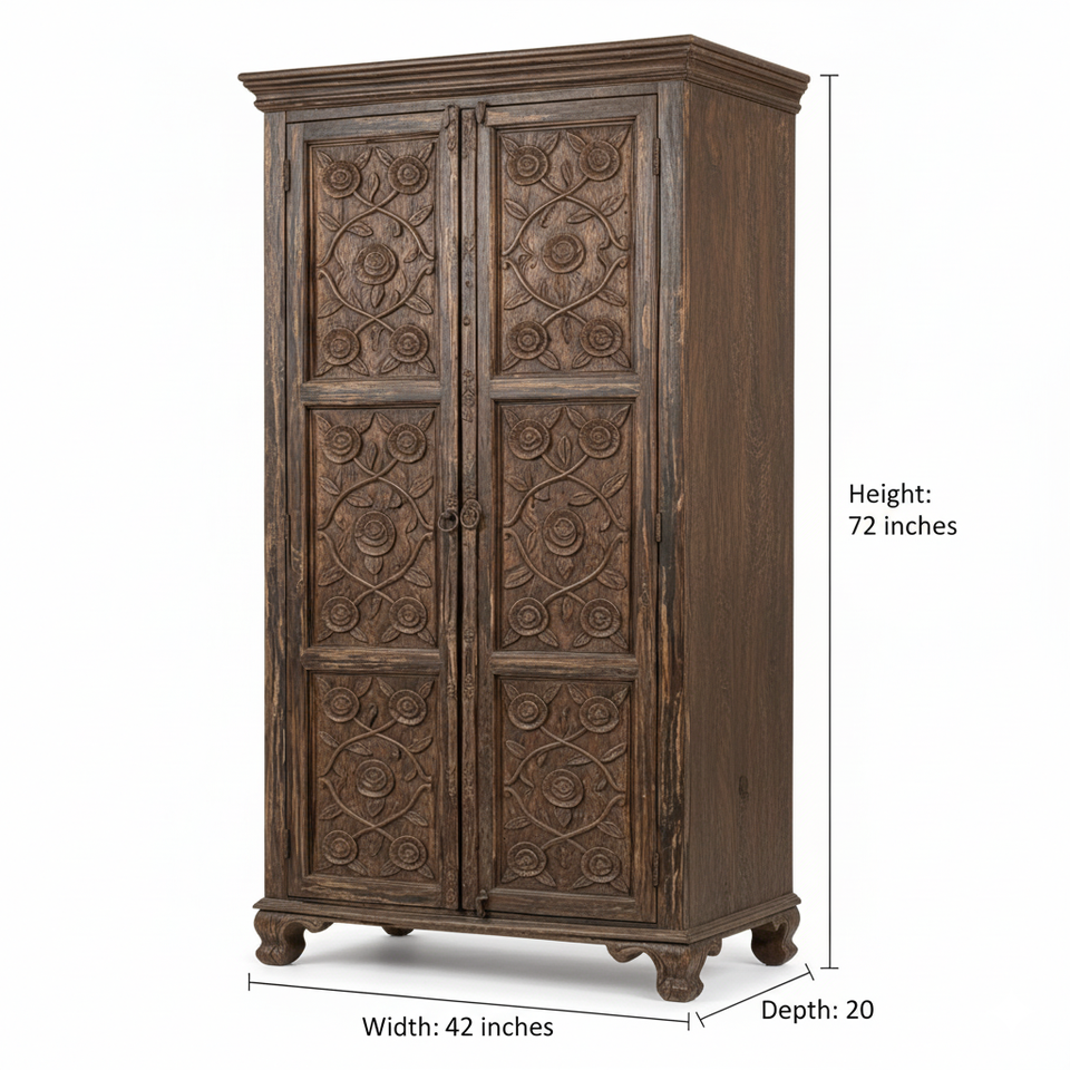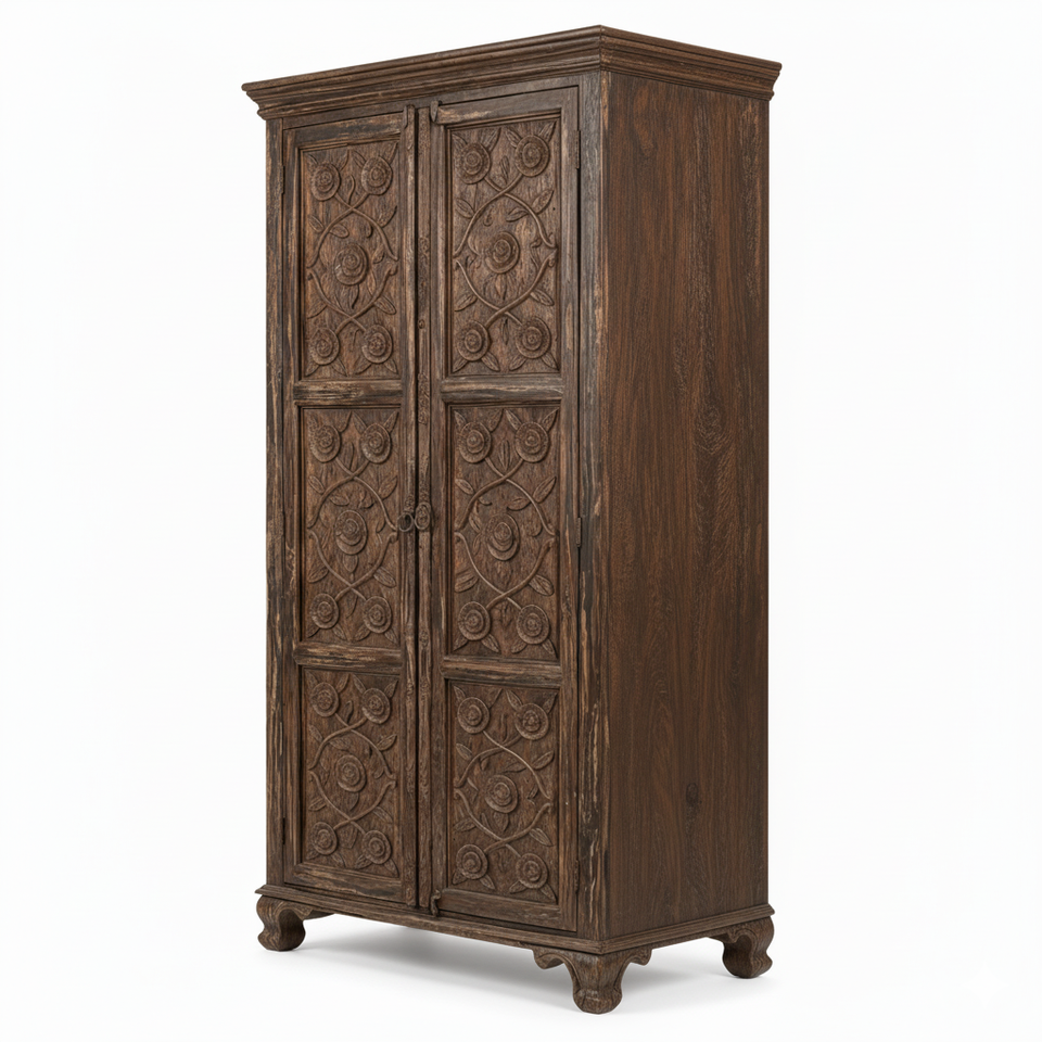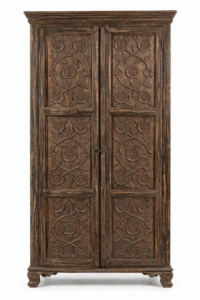 Armario de Madera Maciza Tallada a Mano con Puertas Dobles, Diseño de Rosas, Alta Calidad, para Interiores Modernos y Clásicos, Disponible en Grandes Cantidades