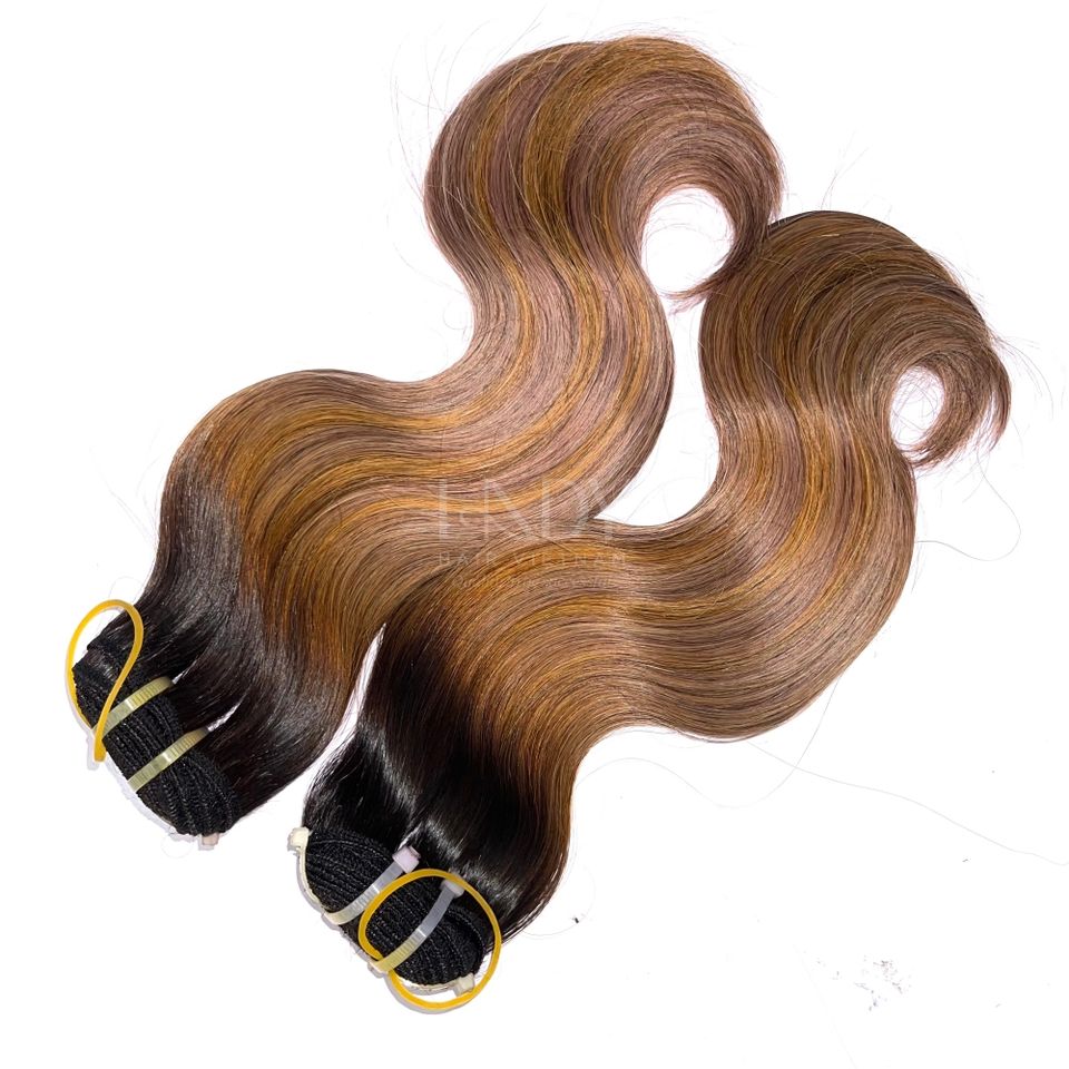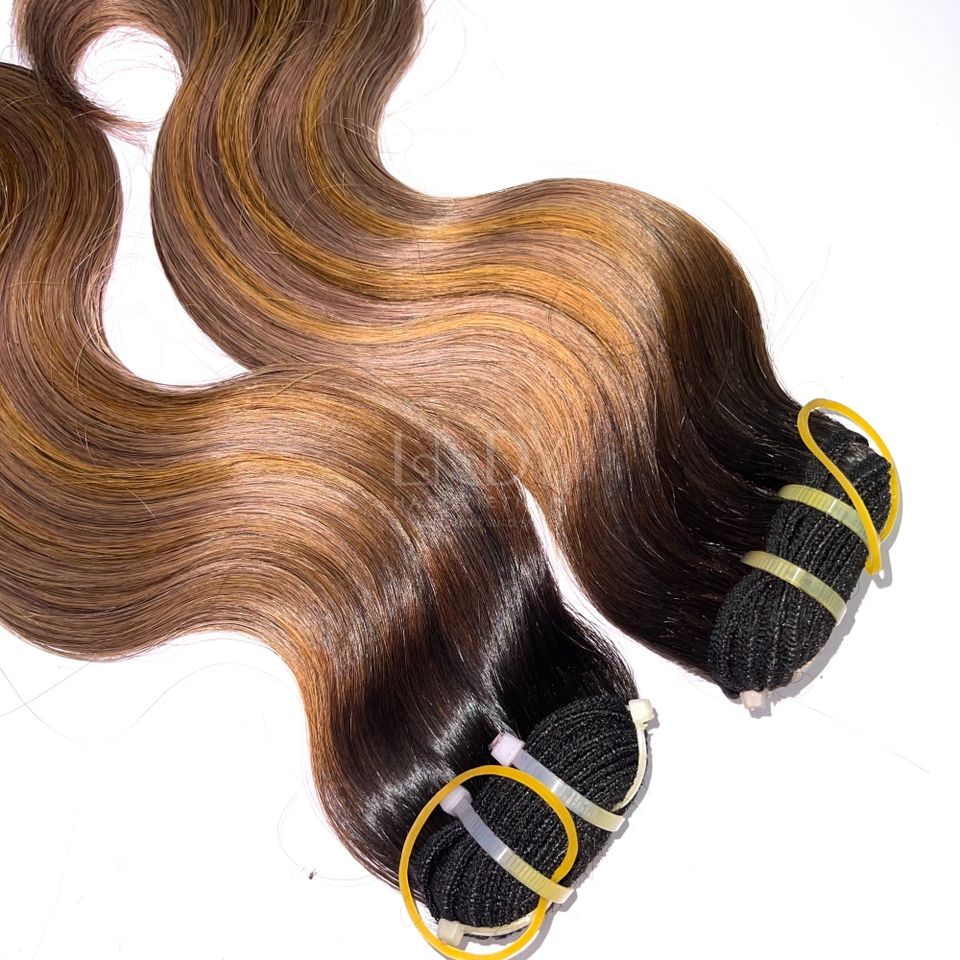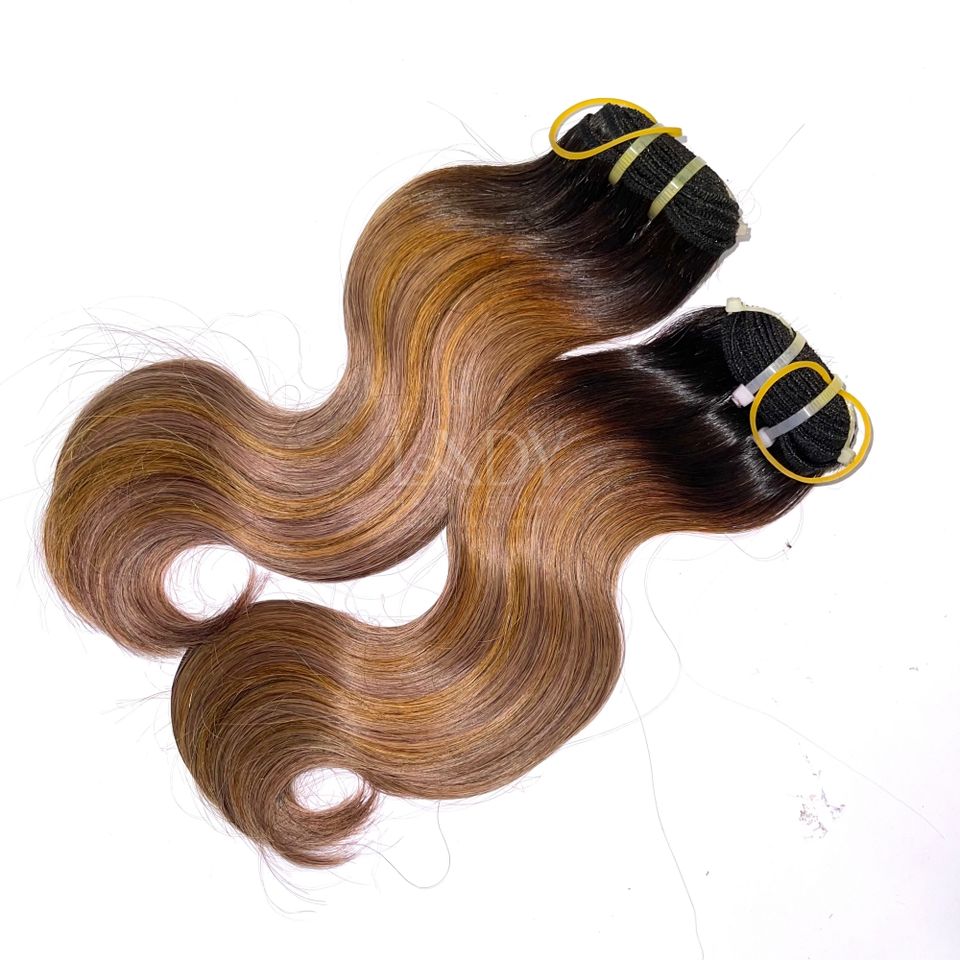 Paquetes de color Ombre de punta ondulada de cuerpo de cabello crudo de alta calidad con cierre para hacer pelucas de cabello vietnamita real