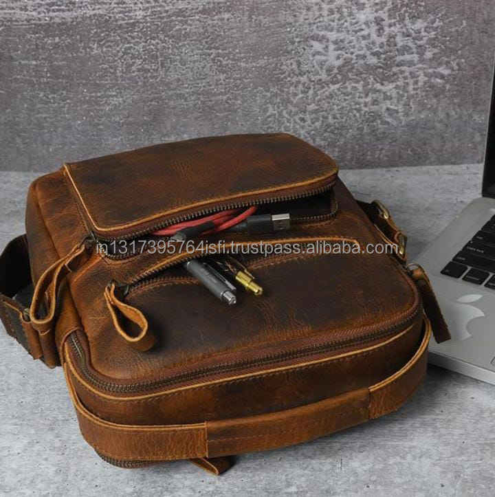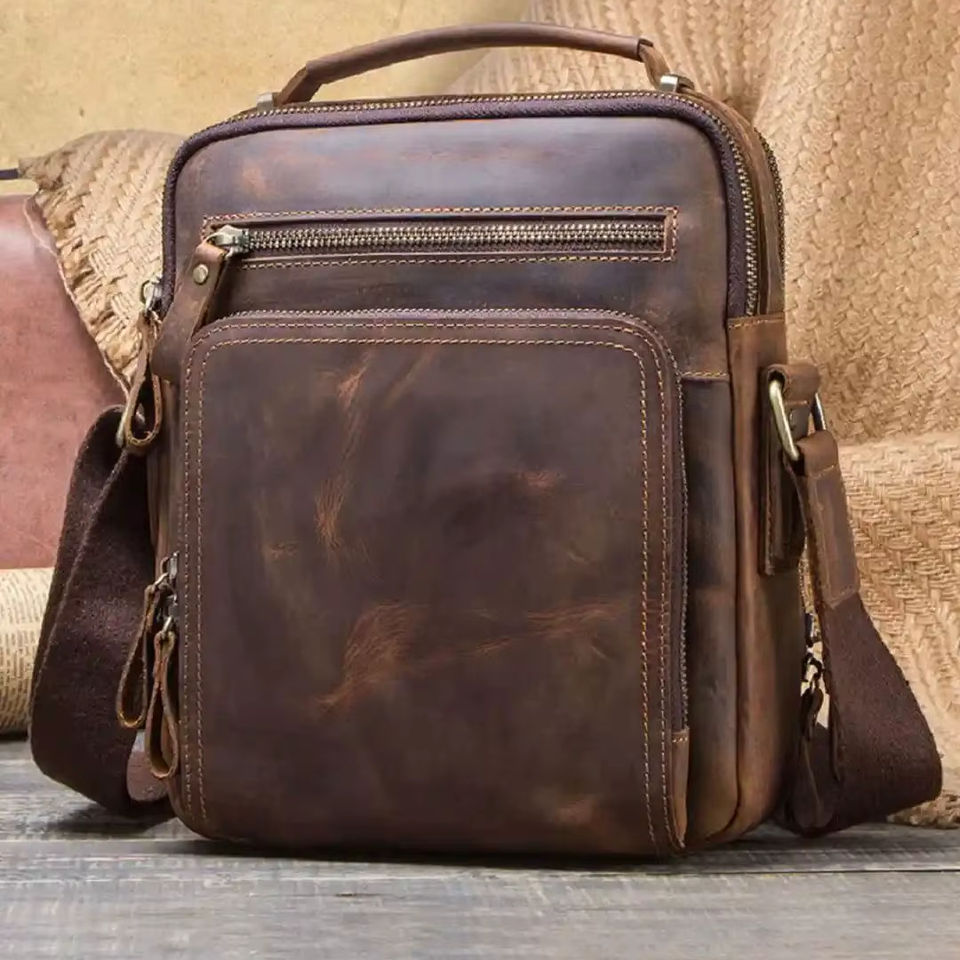 Bolso bandolera de estilo occidental hecho a mano Real de alta calidad cuero de grano completo con cierre de cremallera bolsos Vintage al por mayor