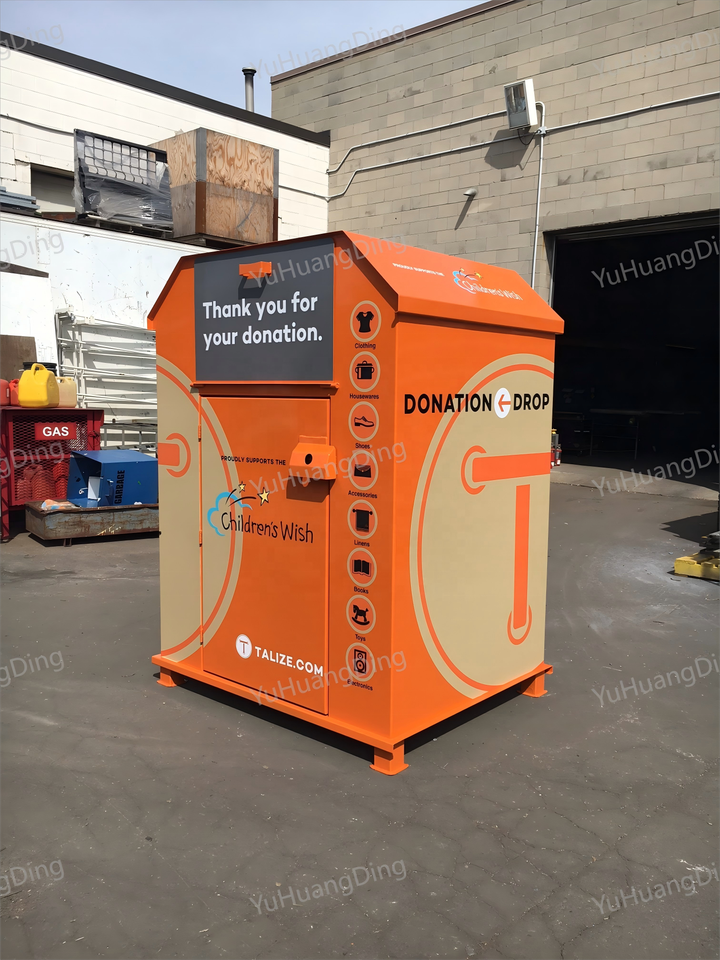 Caja de almacenamiento de reciclaje rectangular de alta calidad, armario de reciclaje de ropa y zapatos usados para exteriores, contenedores de basura para ropa de donación