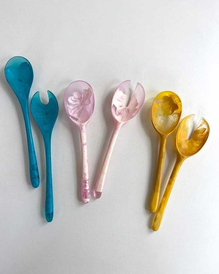 Spinner de ensalada de resina de alta calidad, juego de cuchara de ensalada multifuncional, herramientas de cocina decorativas personalizadas, servidor de ensalada de resina, artículos para el hogar