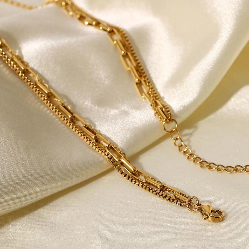 Joyería Retro de alta calidad para mujer, collar de cadena larga de moda de acero inoxidable de tres capas múltiples de 18K