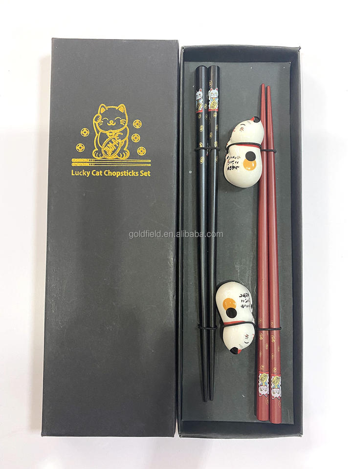Vajilla reutilizable de alta calidad para Sushi, palillos de madera con cerámica, juego de caja de regalo, 2 pares
