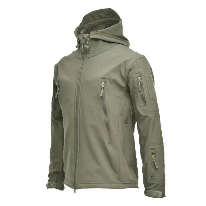 Chaqueta de concha suave de piel de tiburón de lana cálida, con capucha de camuflaje, impermeable, a prueba de viento, ropa de abrigo de escalada, chaqueta de invierno para hombre