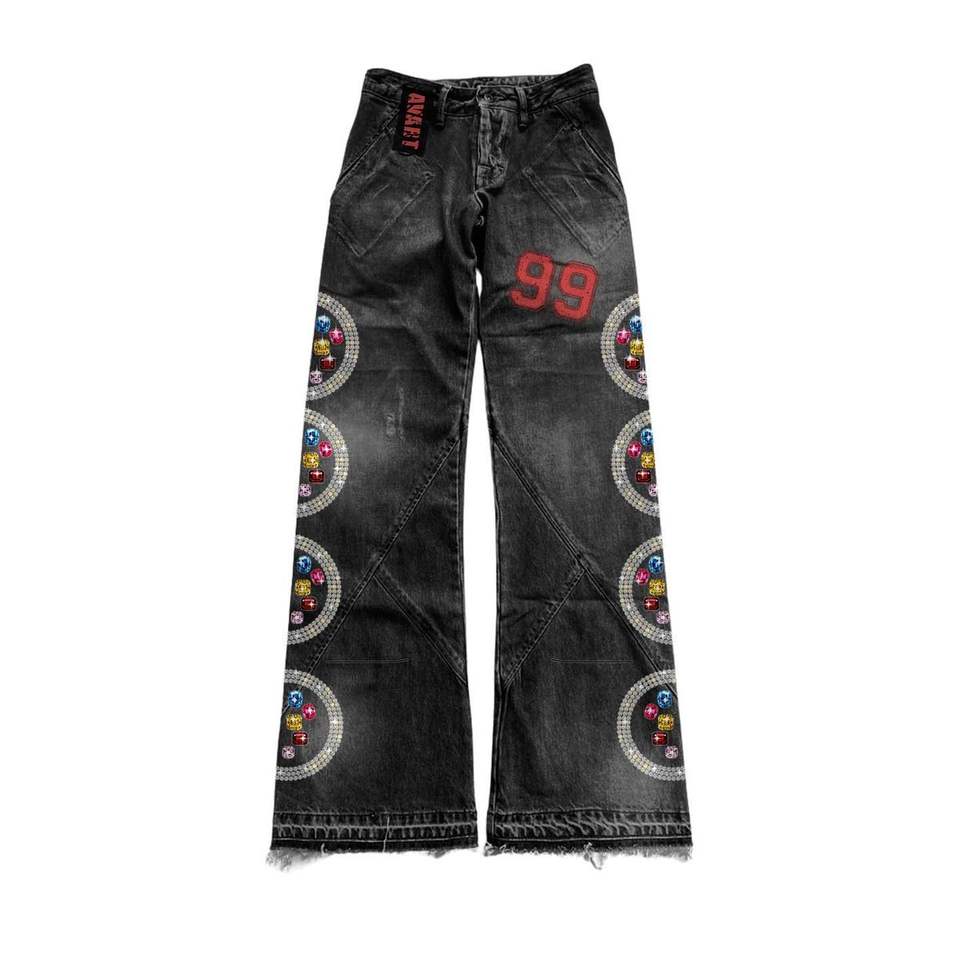 Pantalones Vaqueros Personalizados de Alta Calidad con Pedrería, Diseño Artesanal de Algodón Transpirable con Cristales y Parches de Pedrería, Estilo Urbano