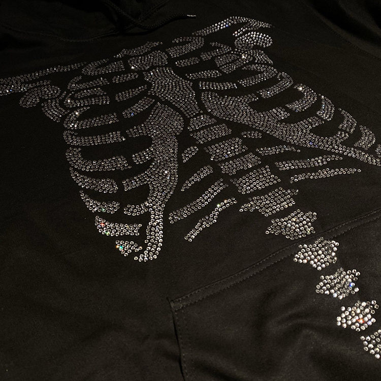 Sudadera con capucha de alta calidad para hombre, con cremallera completa, diseño gráfico de diamantes de imitación, logotipo personalizado, estilo urbano, holgada, lisa y de tejido grueso.