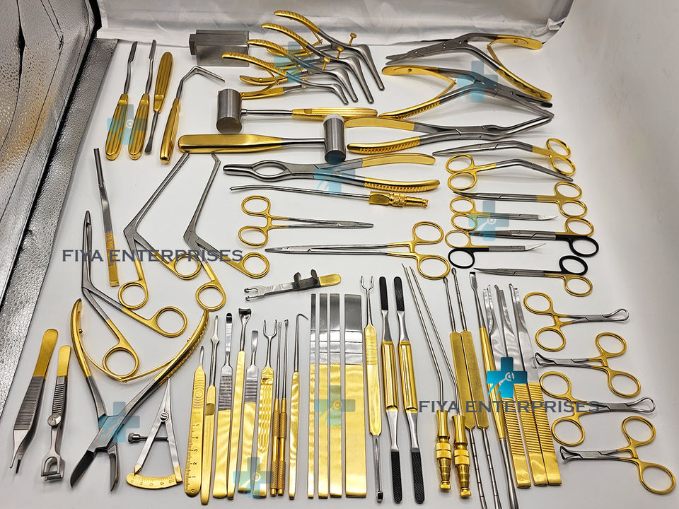 Juego de instrumentos de rinoplastia de alta calidad de 68 piezas con caja de acero Chapado en oro e instrumentos TC