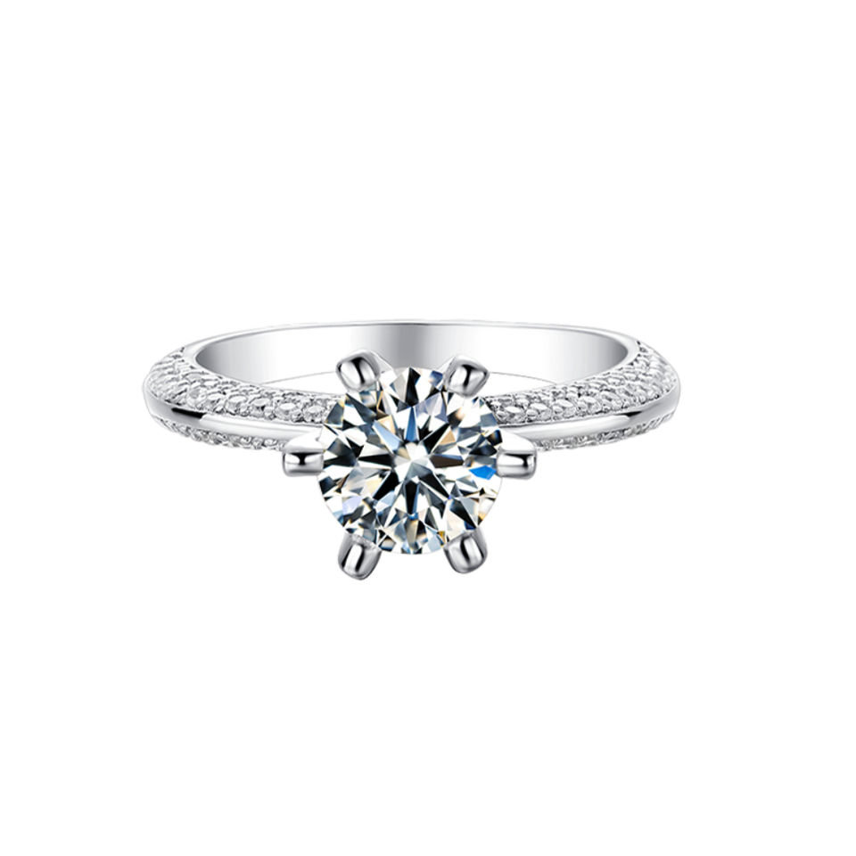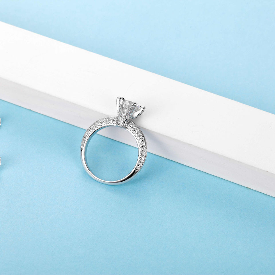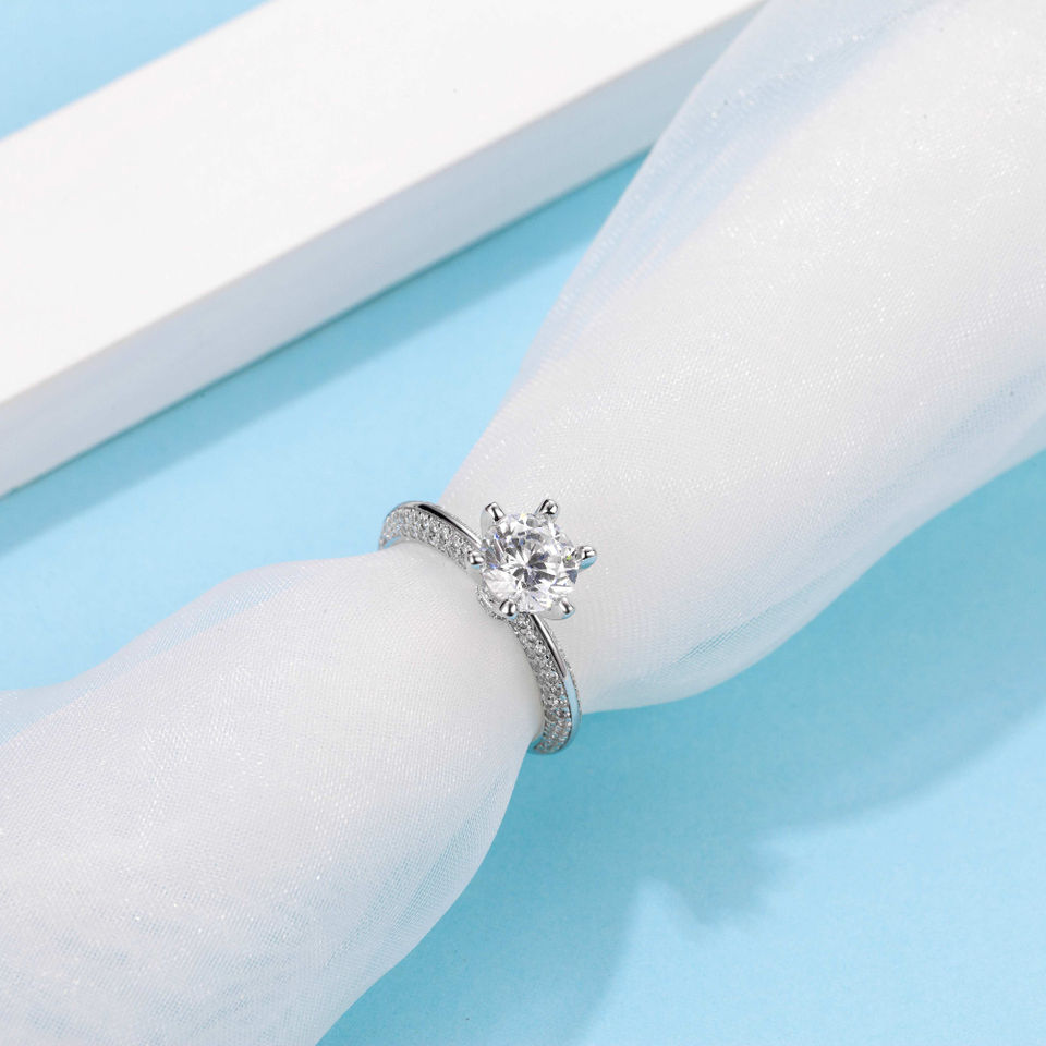 Anillo de Compromiso de Moissanita con Baño de Rodio de Alta Calidad, Anillo de Promesa Solitario de Plata de Ley 925 con Engaste Pavé para Ella, Certificado GRA