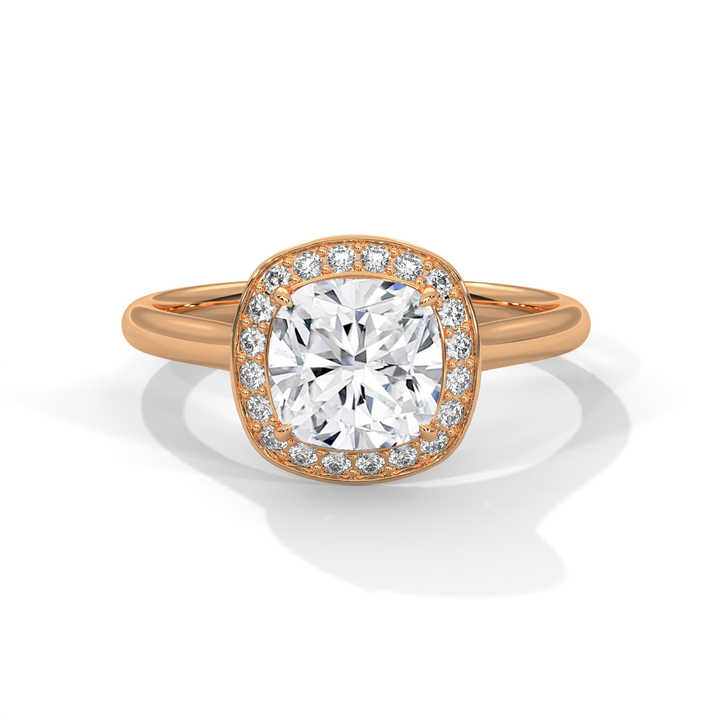 Anillos de Alta Calidad con Diamante Cultivado en Laboratorio de Corte Cojín de Lujo, Anillo de Oro Rosa de 14k con Diamantes Pavé Laterales, Hecho a Pedido