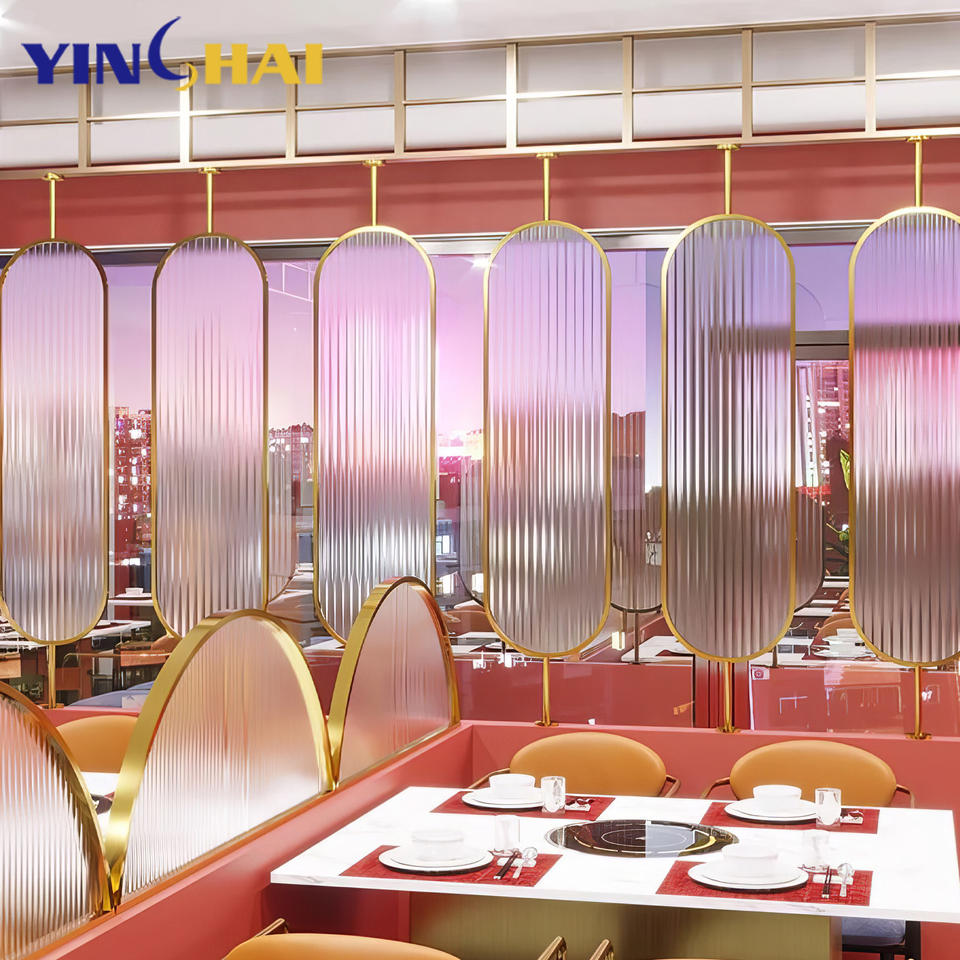 Divisor de vidrio giratorio de alta calidad, divisores de habitación ovalados, separador de salón de restaurante, proyecto de decoración, divisor de pared de partición