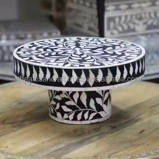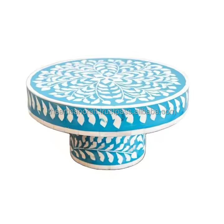 Soporte de pastel con incrustaciones de hueso redondo de alta calidad, último diseño para ropa de fiesta para exhibición de pastel de cumpleaños de Artisan Craft