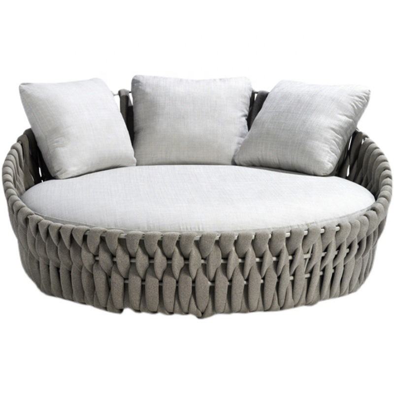 Cama de día redonda de alta calidad con forma de barco, muebles de mimbre para patio y jardín para patios, hoteles y villas