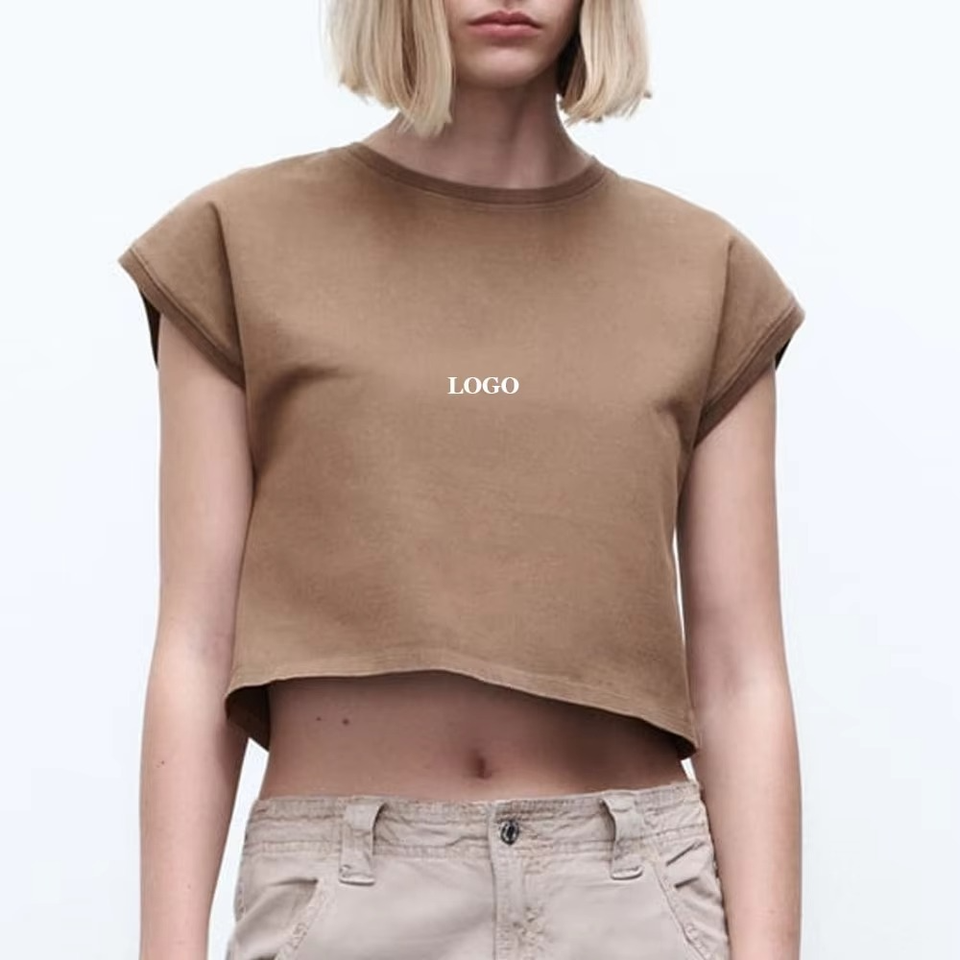 Camiseta corta de manga corta con cuello redondo de alta calidad para mujer Último diseño Precio asequible Camiseta con logotipo personalizado para mujer