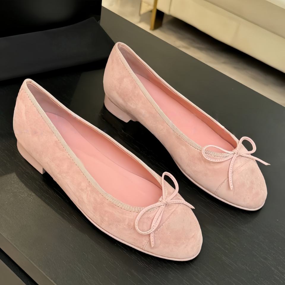 Calzado de alta calidad con diseño de lazo y punta redonda, zapatos planos informales de cuero genuino para mujer, zapatos de Ballet de marca de lujo a la moda