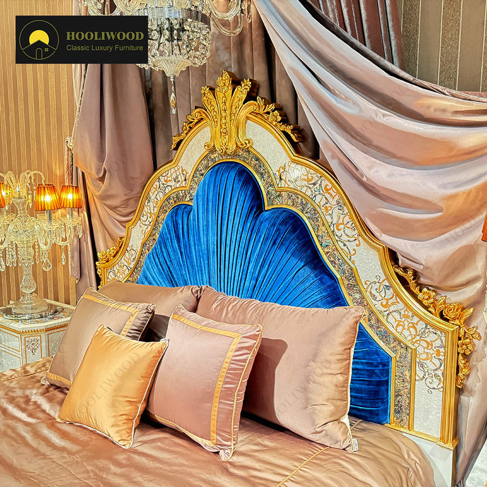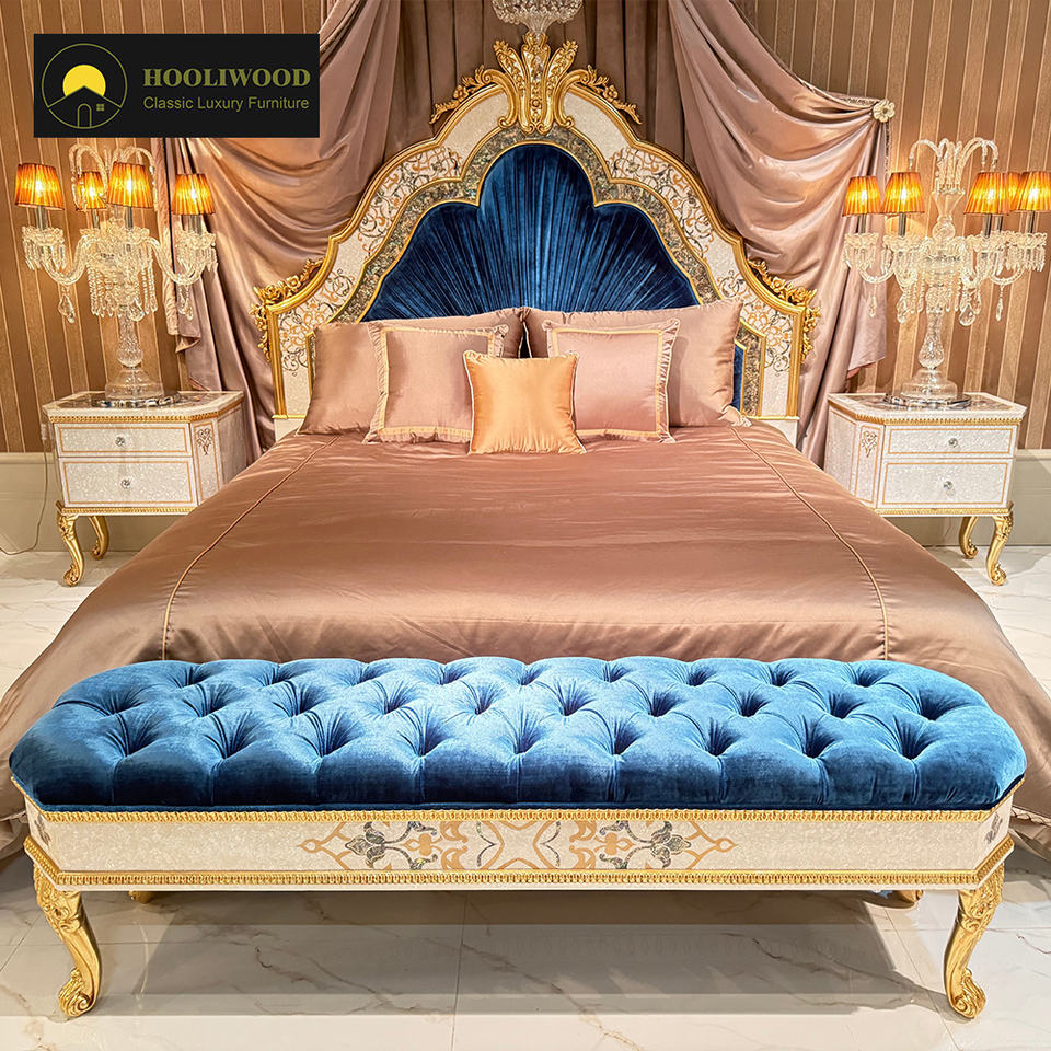 Nombre del producto:Cama King de Terciopelo Azul Royal