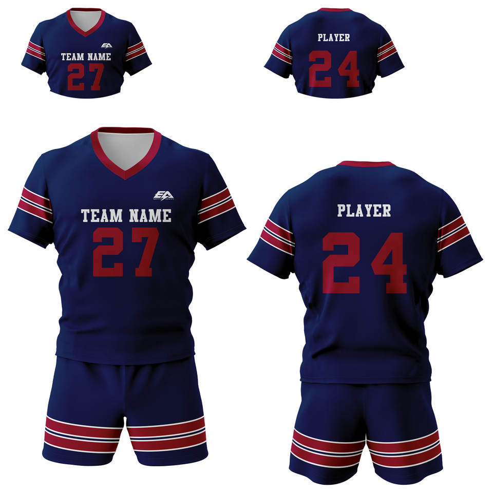 Pantalones cortos de uniforme de rugby de alta calidad con manga larga Logotipo personalizado Camisas y tops al por mayor Técnica de sublimación