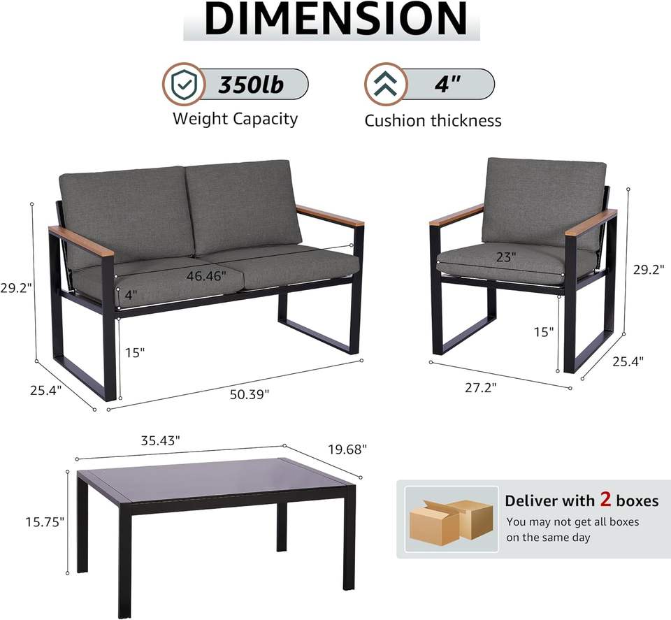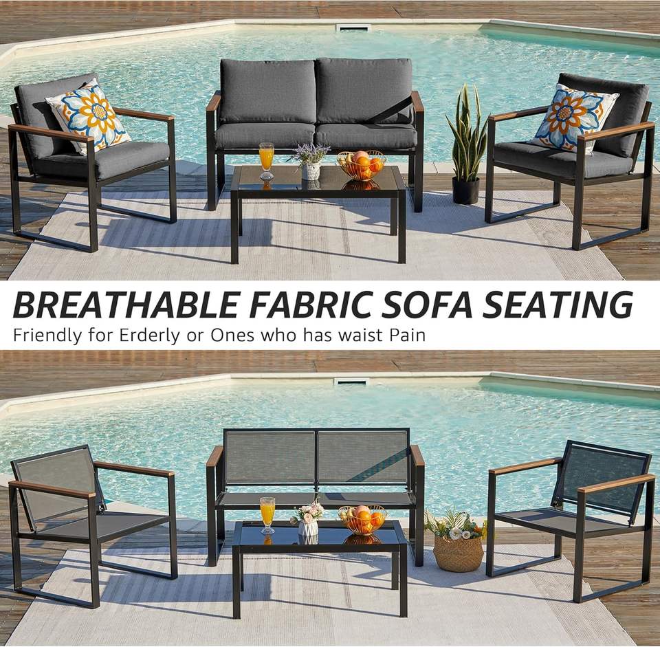 Juego de Sofás de Aluminio Resistente a la Oxidación de Alta Calidad con Cojines Suaves para Patio, Jardín y Uso en Exteriores