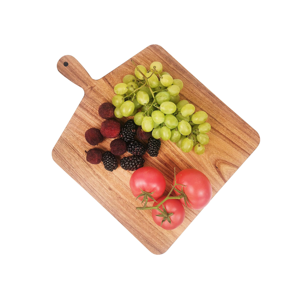 Utensilios de cocina rústicos de alta calidad Tabla de cortar de madera de acacia con mango Precio al por mayor de la fábrica de Vietnam