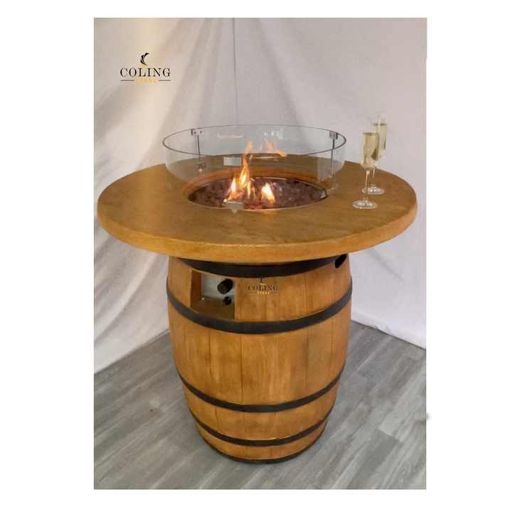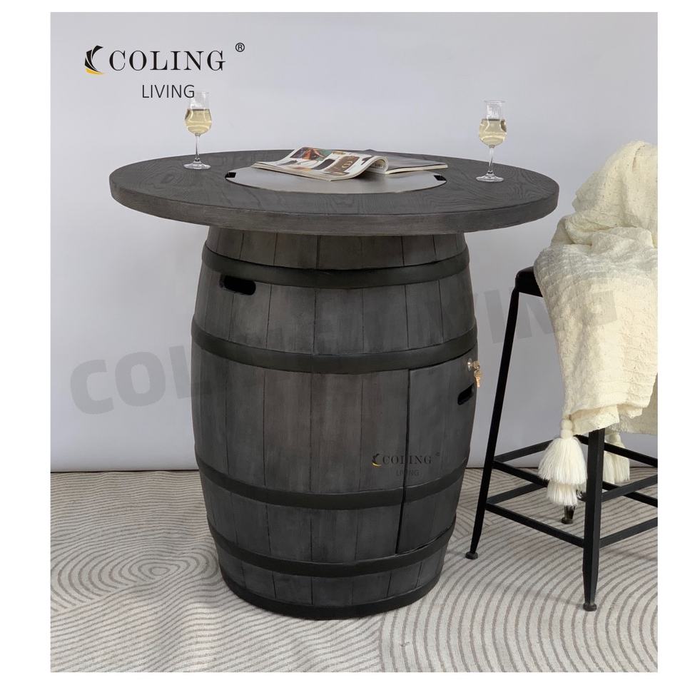 Mesa de pozo de fuego de Gas de barril de vino rústico de alta calidad Patio exterior Barra de fuego de Gas de piedra con control remoto directo de fábrica