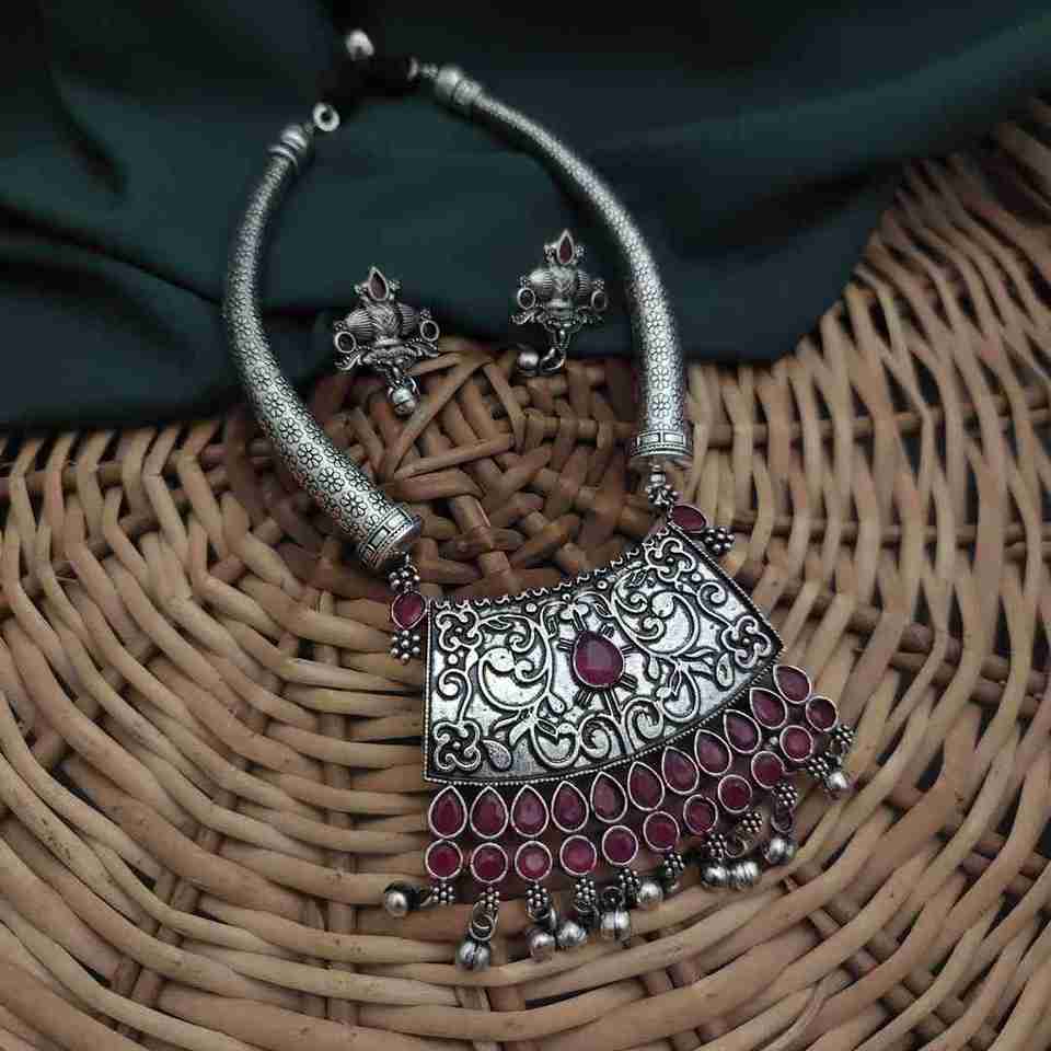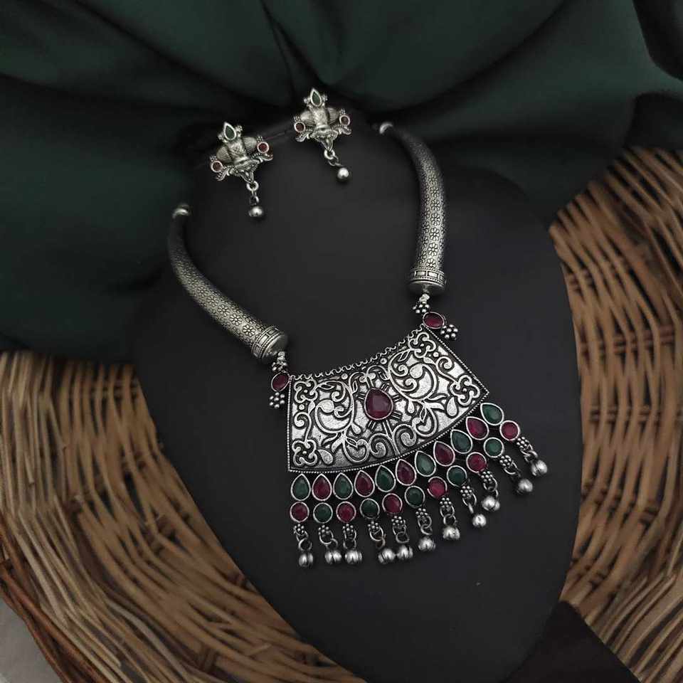 Product Name:SHIPRA Oxidised Hasli Necklace Earrings Set