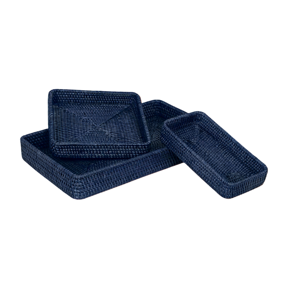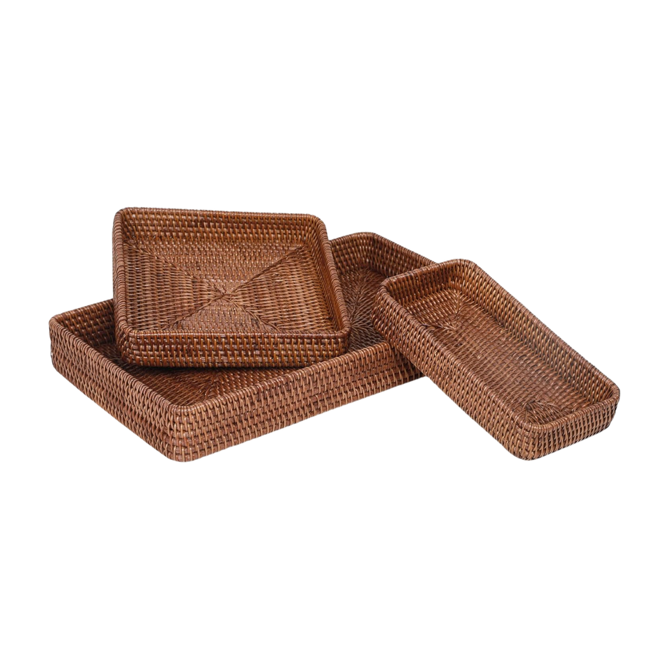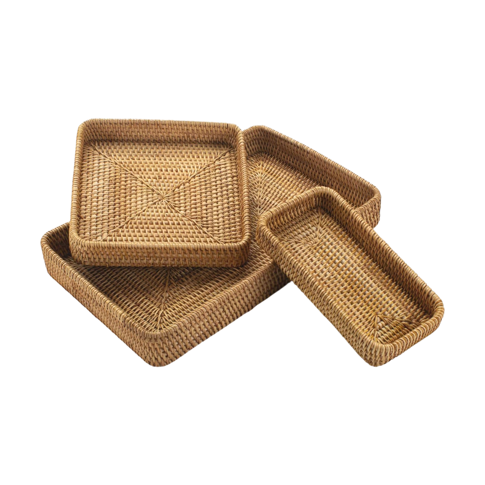 Juego de 3 bandejas decorativas de ratán de alta calidad, hechas a mano, ecológicas, reciclables, con acabado pulido y color personalizado para el hogar.